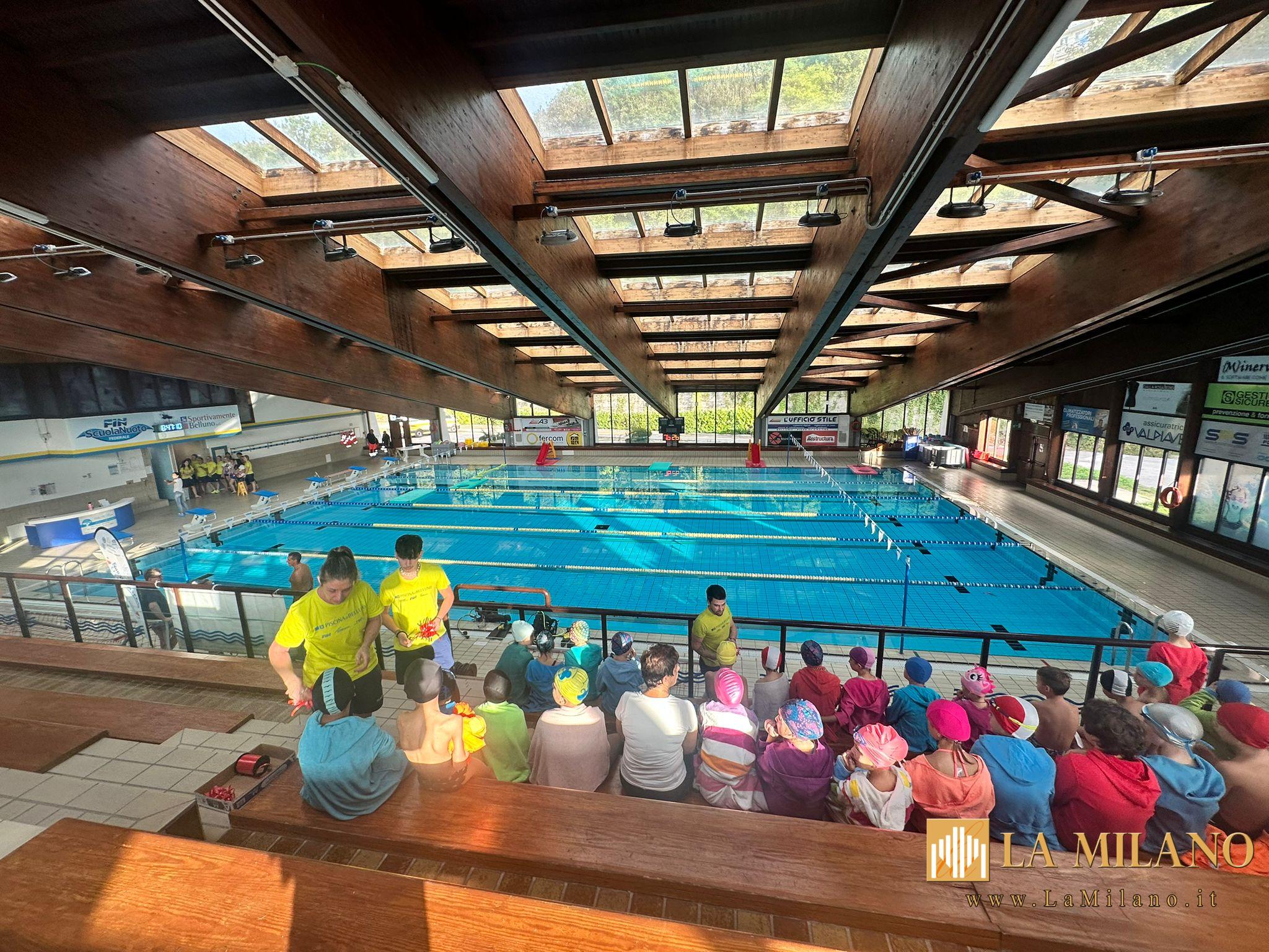 Tutti gli ambienti della piscina sono stati coinvolti nell’attività, dalla vasca nuoto alla vasca tuffi fino alla vasca didattica e ai bambini è stata data piena libertà di muoversi e di provare le attività che preferivano per conseguire uno o due bracciali, a seconda dell’abilità. Gli aspiranti pesciolini si sono quindi misurati con i tuffi, la pallanuoto, l’acquagym, le immersioni subacquee, un percorso di salvamento e nuoto, il nuoto sincronizzato e un percorso di acquaticità.